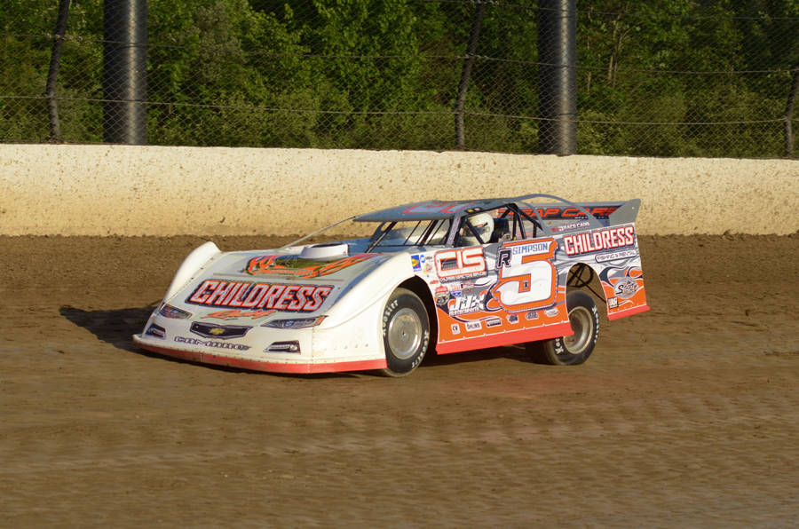 Chris Simpson throttles up during the 2015 'Dirt Late Model Dream' weekend at Eldora (OH) Speedway - Todd Healy Photo