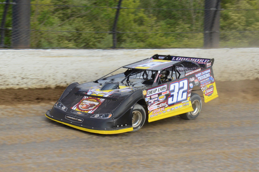 Chris Simpson hard on the throttle during the 'Dirt Late Model Dream' weekend at Eldora (OH) Speedway - Todd Healy Photo