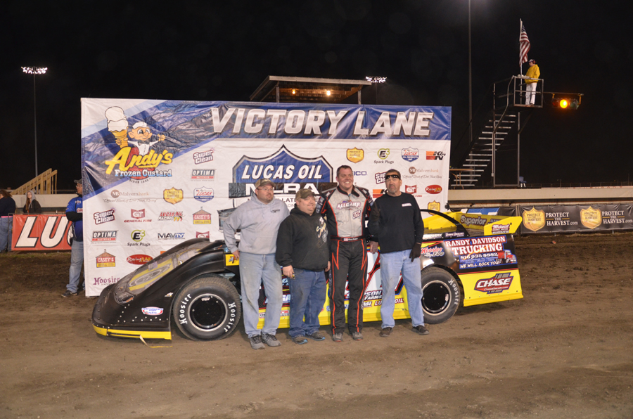 Chris Simpson finds victory lane at Davenport (IA) Speedway on April 20, 2018 - Todd Healy Photo