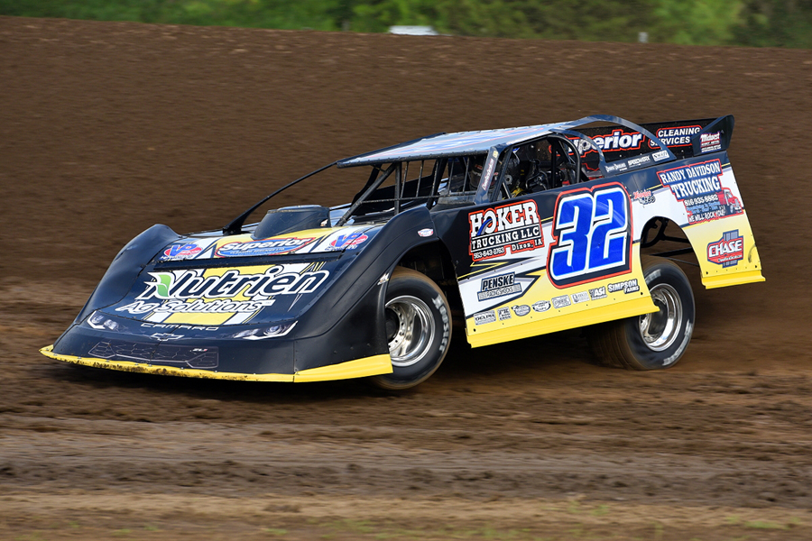 Chris Simpson on his way to a $5,000 MLRA win at Maquoketa (IA) Speedway in June 2020 -