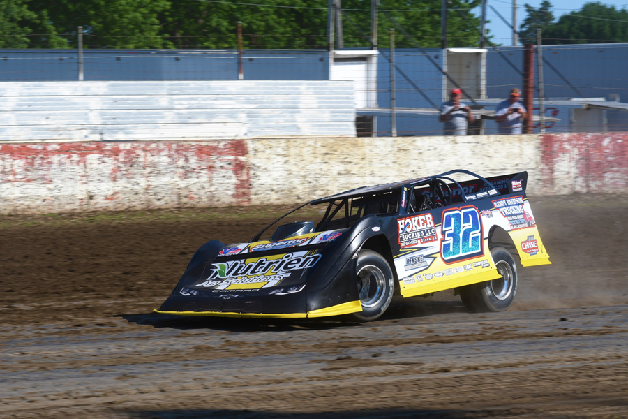 Chris Simpson on the gas at West Liberty (IA) Raceway in June 2020 - Todd Healy Photo